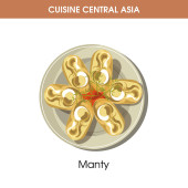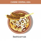 Pożywne orientalne Tyahan na płycie od kuchni japońskiej na białym tle kreskówka wektor ilustracja na białym tle. Danie z smażony ryż, filet z kurczaka, papryka, sos sojowy i gotowanej fasoli.