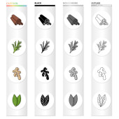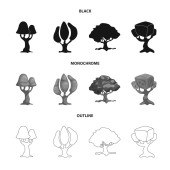 Suche drzewa w lesie, wiewiórka, liści dębu, kikut. Lasu zestaw kolekcji ikon w kreskówka czarną obwódką monochromatyczne styl wektor symbol ilustracji w sieci web.