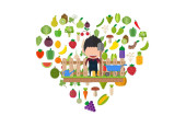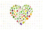 Serce zestaw warzyw: owoce, warzywa, organiczne. Płaskie wektor ilustracja zestaw.
