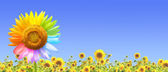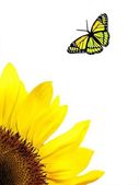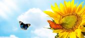 Słonecznik i monarcha motyle na tle niebieskiego nieba