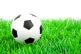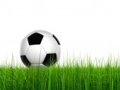 Wysokiej rozdzielczości zielony, 3d świeży i naturalny pojęciowy trawa na białym tle na białym tle z piłki nożnej w horizon idealne dla klubu, sport, rekreacja, konkurencji, zabawy i futbolu wzory
