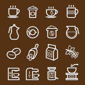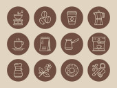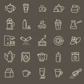 Prosty zestaw Kawa związane wektor linii ikony. Kolekcja kawy ikony w stylu cienka linia na brązowym tle. Cafe wektorowe ikony. Ilustracja wektorowa
