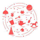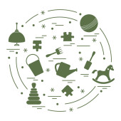 Ilustracja wektorowa dzieci elementy ułożone w okrąg: whirligi