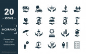 Elementy ubezpieczenia - minimalny zestaw cienkich linii web ikony. Zarys kolekcji ikon. Prosta ilustracja wektora.
