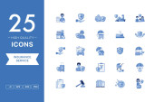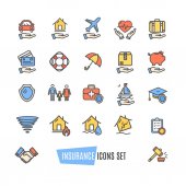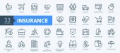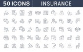 Elementy ubezpieczenia - minimalny zestaw cienkich linii web ikony. Zarys kolekcji ikon. Prosta ilustracja wektora.