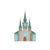 Budynek Kościoła katolickiego, widoki z różnych stron. Trójwymiarowa ilustracja na białym tle.
