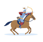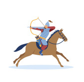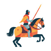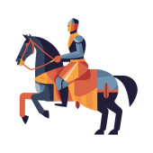 Kreskówka Rycerz na koniu na tle.