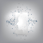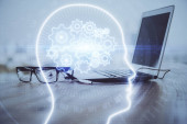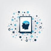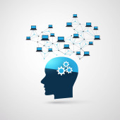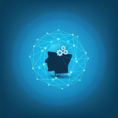 Uczenie maszynowe, sztuczna inteligencja, przetwarzanie w chmurze i sieci koncepcja Laptop, Sieć Mesh i ludzkiej głowy