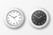 Zestaw realistyczny klasyczny czarny, biały i srebrny okrągły zegar ścienny