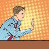 Zdjęcie "Człowiek siedzący zatrzymując się ktoś. Człowiek, zatrzymując się ktoś. Człowiek, odrzucając coś. Zakazywanie człowieka. Przystojny, młody biznesmen, dając sygnał stop." może być wykorzystywane do celów osobistych i komercyjnych zgodnie z warunkami zakupionej licencji Royalty-free. Obraz jest dostępny do pobrania w jakości wysokiej rozdzielczości do 5760x3840.