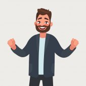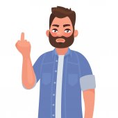 Człowiek pokazuje gest "nie" lub "stop". Ilustracja wektora w stylu kreskówki