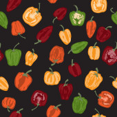 Płynny wzór z różnymi warzywami na białym. Papryka, inny kolor