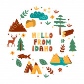 Idaho, Stany Zjednoczone podróży plakat lub naklejki. Mucha rybołóstwo w górskim potoku.