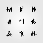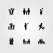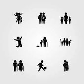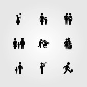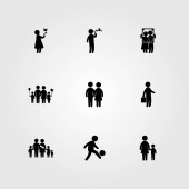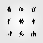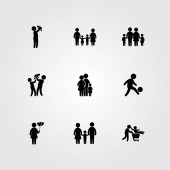 Wektor zestaw ikon ludzi. Mama, człowiek daje kwiaty, dziecko i człowiek