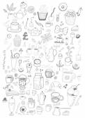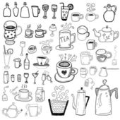 Herbata, Kawa i desery zestaw kolorowych ilustracji