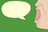 Wow człowieka pop-artu. Człowiek z otwartymi ustami krzyczy ogłoszenie na e