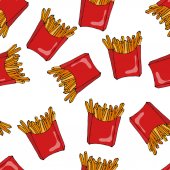 Wektor frytki w czerwony papier pole, pop-artu fast food, frytki ic
