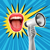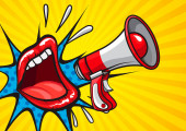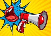 Zdjęcie "Sexy otwarte usta kobiece i megafon krzyczy ogłoszenie. VEC" może być wykorzystywane do celów osobistych i komercyjnych zgodnie z warunkami zakupionej licencji Royalty-free. Obraz jest dostępny do pobrania w jakości wysokiej rozdzielczości do 5760x3840.