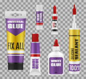 Zestaw rur realistyczne wektor kleju opakowania makieta szablonu.