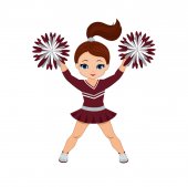 Zdjęcie "Cheerleaderka w bordo i srebrny uniform z Pom Poms. Wektor ilustracja na białym tle." może być wykorzystywane do celów osobistych i komercyjnych zgodnie z warunkami zakupionej licencji Royalty-free. Obraz jest dostępny do pobrania w jakości wysokiej rozdzielczości do 5760x3840.