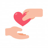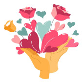 Wektor izolowane płaskie ikonę pomocną dłoń do serca lub dając projektu pomocy lub opieki zdrowotnej miłości
