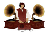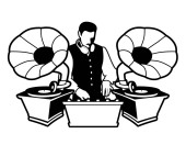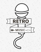 Sylwetki Dj kobieta stylu retro z słuchawki i wstążki na pierwszym planie