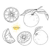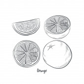 Ilustracja z orange w Grawerowanie stylu. Projektowanie dla pakietu produktów naturalnych zdrowia i urody. Świetne, etykieta, plakat, projektowanie opakowań.