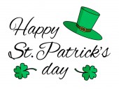 Szczęśliwy St. Patrick's Day. Kobold koniczyna kapelusz i zielony liści. Świąteczny baner, karty z pozdrowieniami. Projektowania typografii. Ilustracja wektorowa