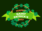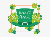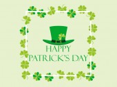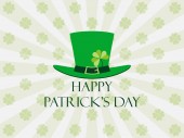 Szczęśliwy St. Patrick's Day. Powieszenie kapelusz koniczyna i skrzatów. Świąteczny baner, karty z pozdrowieniami. Projektowania typografii. Ilustracja wektorowa