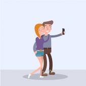 Para co selfie - kreskówka ludzie charakter ilustracja na białym tle