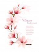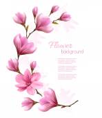Wiosenne tło natury z pięknymi gałęziami magnolii. Wektor.