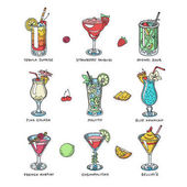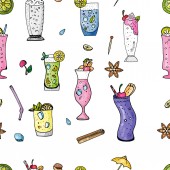 Koktajl wektor alkoholu napój do picia alkoholu tequila martini pić koktajl w szkle z pina colada mojito i kosmopolityczne lub picia tło wzór bellinis