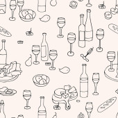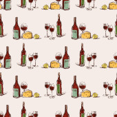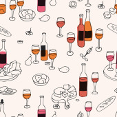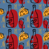 Francuski kuchnia rogalik wino szkło wzór tła smaczne jedzenie i dania kuchni kolację jedzenie pyszne elementy płaskie wektor ilustracja.
