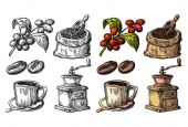 Filiżanka herbaty dowcip i gałęzi z liści. Grawerowanie vintage wektor