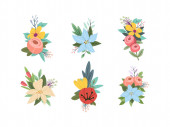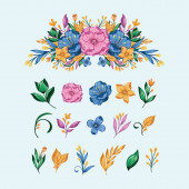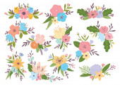 Kolekcja ręcznie rysowane doodle pastelowe kwiaty i rośliny, styl boho dziewczęcej, wektor, ilustracja