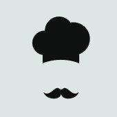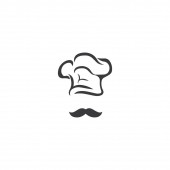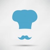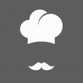 Szef kuchni czarny kapelusz i wąsy na białym tle