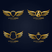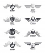 Zestaw tarcz skrzydlate heraldyczne w różnych kształtach z korony i ikonę literą A