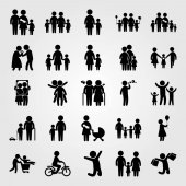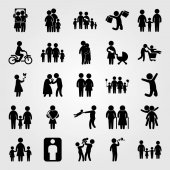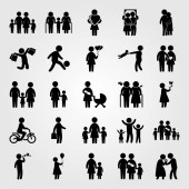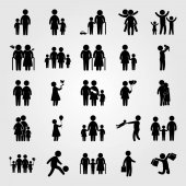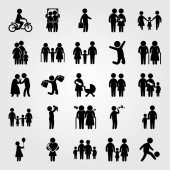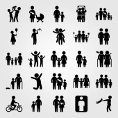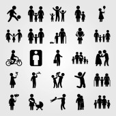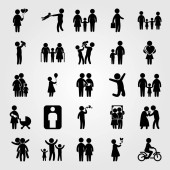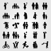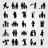 Wektor zestaw ikon ludzi. matka z dwoma chields, dziecko jazdy na rowerze, wnuk i dziecko