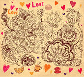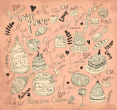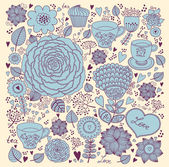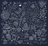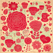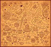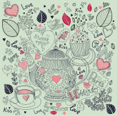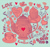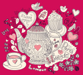 wektor sztuki ręcznie rysowane Kartka świąteczna z ciastko i czajnik