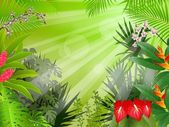 Ilustracja wektorowa rano tropikalny krajobraz z palmami i liści