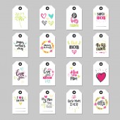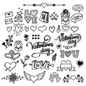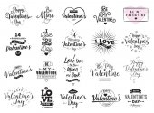 Valentine Day etykietki, odznaki i ikony, miłość kartki okolicznościowe, typografia projektowanie elementów zestawu