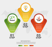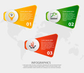 Ilustracja wektorowa nowoczesny 3d. Szablon dla okręgów infografikę z trzech elementów, prostokąty. Zawiera ikony i tekstu. Przeznaczony dla firm, prezentacje, strony www, diagramów w 3 krokach