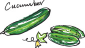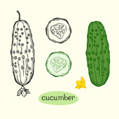 Ogórek wektor ilustracja w stylu grawerowania. Wegetariański szczegółowy rysunek. Gospodarstwo rynku produktu. Ilustracja do tworzenia menu, przepisy kulinarne, dekoracyjne przedmioty kuchenne.