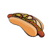 Gorący pies. Wektor pojedyncze płaskie ilustracja fast food plakat, menu, broszura, web i ikona fast food.