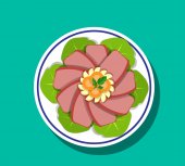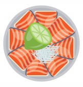 Widok z góry, łosoś Sashimi na białym talerzu, wektor