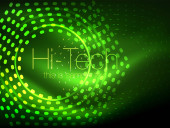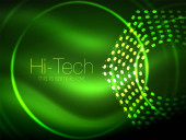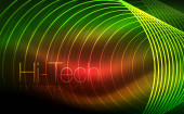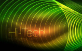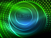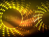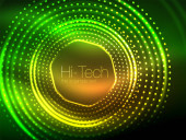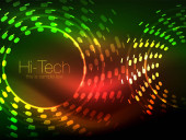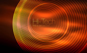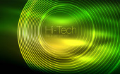 Okrągłe kształty o neon świecące, techno tło. Abstrakcja błyszczący kręgów przezroczysty na przestrzeni Mroczne technologia