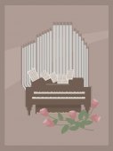 Jasny brązowy pocztówka z małego pokoju narządów drewniane brązowy i szary z dwie klawiatury na ręce i stron z uwagi