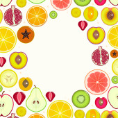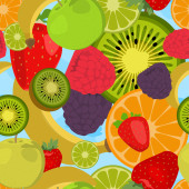 Bezszwowe tło w plasterkach warzywa i owoce. Wielobarwny wzór żywności. Wektor.
