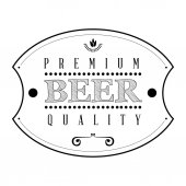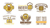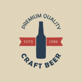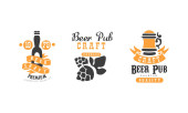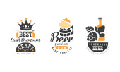 Oryginalne logo szablon dla pub. Kolorowy emblemat z butelką piwa, oddział pszenicy i wstążki. Napój alkoholowy. Element wektora dla reklamy poster