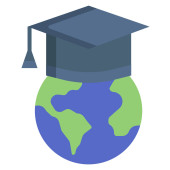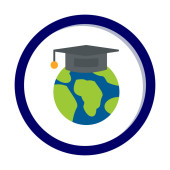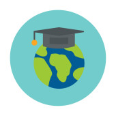 Płaskie ikona globu z Edukacja kapelusz. Symbol na całym świecie edukacji